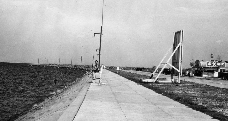 The Historic New Orleans Collection A lone lifeguard and a few visitors to Kelly's Lakeshore Drive stand are the only visible human beings in this photograph
